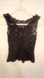Chic black lace top with sleeveless design. Features delicate lace pattern and tie detail. Perfect for stylish outings.