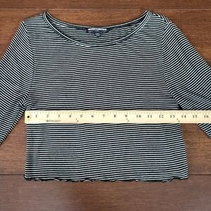 Brandy Melville Black & White Striped Long Sleeve Lettuce Hem Crop Top Fits XS/S