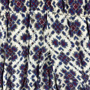 Chic dress with a blue and white geometric design. Ideal for casual outings.