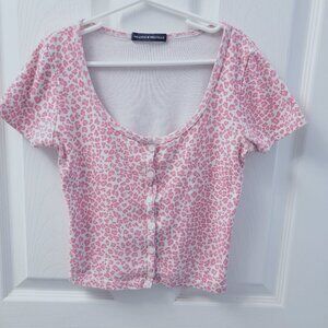 Brandy Melville Cheetah Button Down Crop Top Pink White OS XXS-XS