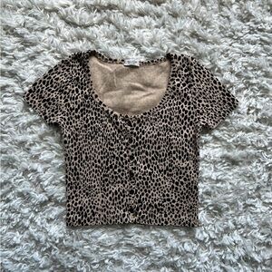 Brandy Melville Cheetah Print Button Up Baby Tee