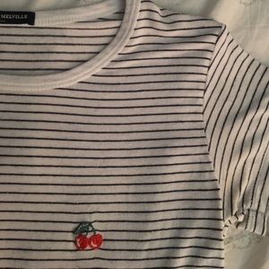 very cute and super lightweight tee from brandy with embroidered cherry. one size fits all, would best fit a xs/s.