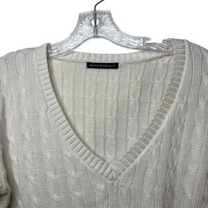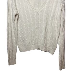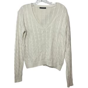 Brandy Melville Cream Cable Knit V-Neck Sweater Soft Cozy Classic Knitwear Baisc