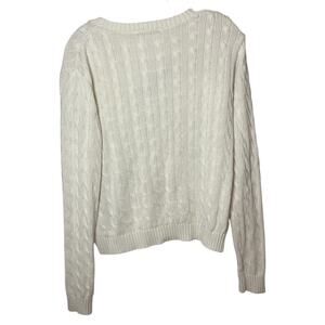 Cozy and classic Brandy Melville cable knit sweater in a soft cream color. Features a flattering V-neckline, long sleeves, and stretchy ribbed trim. The perfect everyday essential for fall and winter — great for cottagecore, neutral minimalism, coquette, and clean-girl aesthetic outfits.