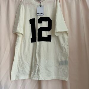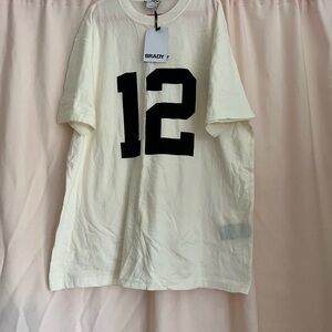 This Brandy Melville tee features a bold black '12' on a soft cream background, offering a classic and sporty vibe. The short sleeves and crew neck design make it a versatile addition to any casual wardrobe.
