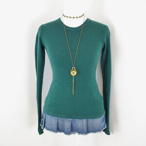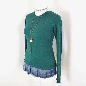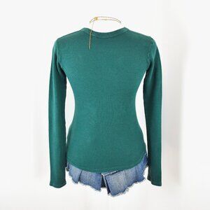 Brandy Melville Dark Spruce Emerald Green Waffle Thermal Knit Long Sleeve Top OS