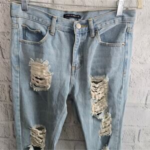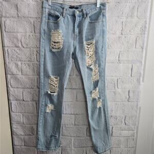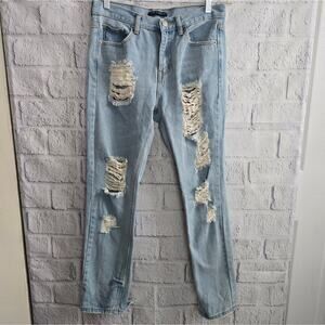 Brandy Melville Distressed Light Wash Straight Leg High Rise Jeans Size Small
