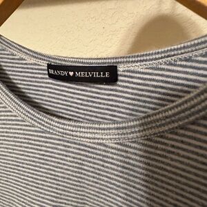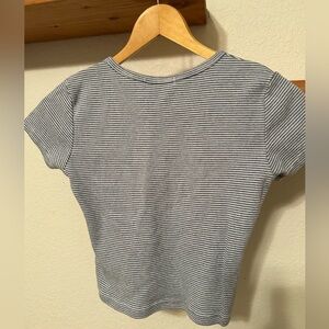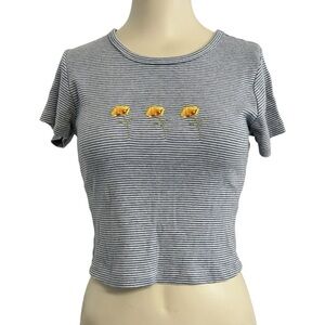 Brandy Melville Embroidered Striped Cropped T Shirt