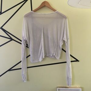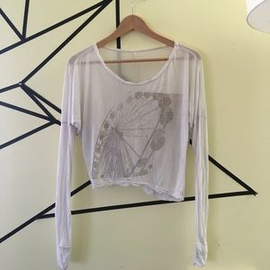 Ultra soft, sepia Ferris wheel (possibly the London eye?) print tee from Brandy Melville. Material is ridiculously comfortable, very soft and sheer, so there is a small hole near the neckline that is hardly noticeable. Long sleeves and cropped body.