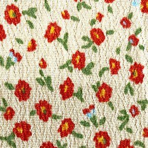 ♥ Cute ditsy print of red and green flowers on a deep cream / light beige.