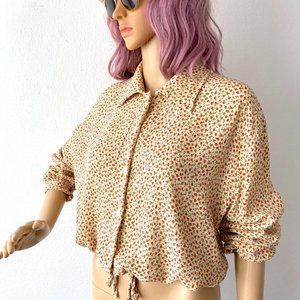 Brandy Melville Floral Blouse Drawstring Top Cropped Blouse Trendy Casual S M L