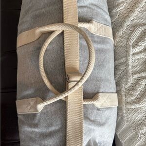 Stylish travel bag by Brandy Melville. Features a gray body with cream handles. Gently used in excellent condition, no flaws!