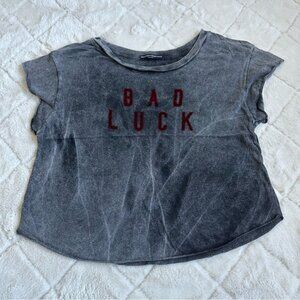 Brandy Melville | Gray and Red Velvet Acid Wash "Bad luck" Crop Top | One Size