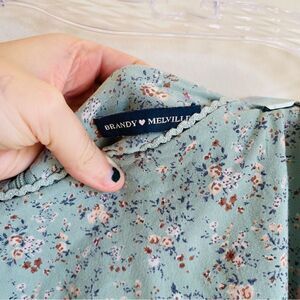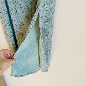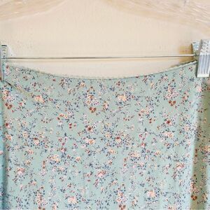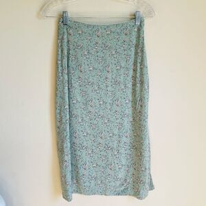 Brandy Melville Green Floral Midi Side Slit Skirt OS