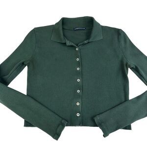 Brandy Melville Green Ribbed Long Sleve Collar Shirt, OS