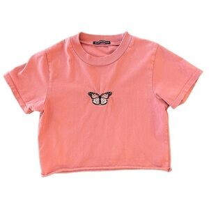 Brandy Melville Helen Embroidered Butterfly Baby Tee, One Size