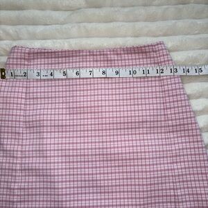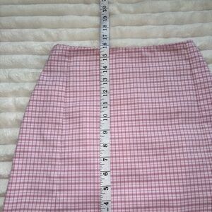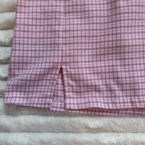 Pink and white plaid mini skirt with zipper on back and small slits on the front. High waisted fit