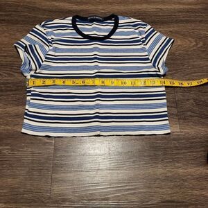Brandy Melville Horizontal Striped Cropped Crew Neck Tee Women's Size Small