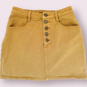 Brandy Melville J. Galt Brown Tan Button Fly Denim Mini Skirt Size Small PacSun