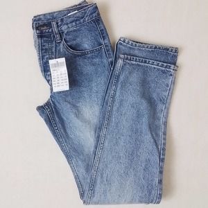 These 100% cotton jeans feature a mid rise waist, straight leg, and button fly. New with tags.