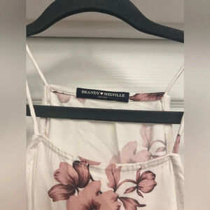 This beautiful Brandy Melville Jada Pink Floral Mini Slip Dress Halter is perfect for any casual occasion. The dress features a halter neckline and a pullover closure, with a sleeveless design and strappy sleeve type. It is made of a lightweight fabric, which is a combination of rayon and 58% cotton and 42% viscose.