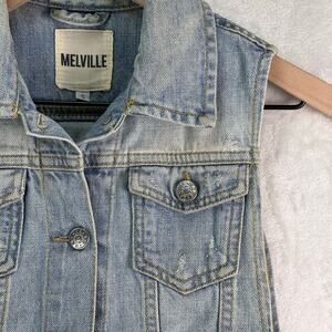 Brandy Melville Jean Vest Button-Up Collared Cotton Light Wash Denim Blue Size S