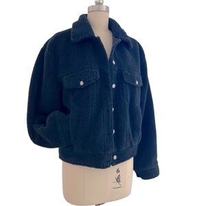 Brandy Melville John Galt Navy Blue Teddy Jacket Plush Jacket M