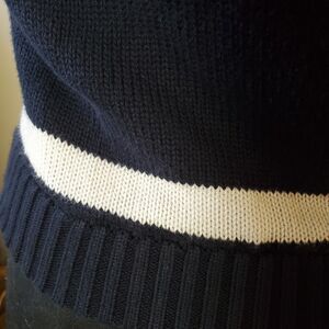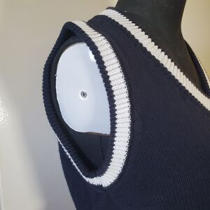 In perfect clean condition. This Brandy Melville John Galt sweater vest is perfect for any stylish woman looking for a colorful addition to their wardrobe. The navy blue and white striped design is cable-knit for a cozy and comfortable feel. The sleeveless vest has a V-neckline and is made of cotton material, ensuring durability and easy care with hand wash only.