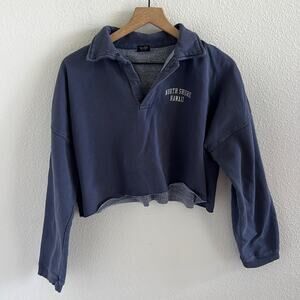 Brandy Melville John Galt Navy Cropped Sweatshirt North Shore Hawaii Graphic