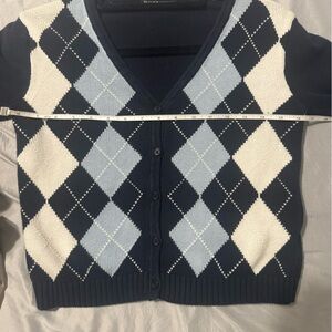 Brandy Melville John White Elizabeth Sweater Argyle Cardigan Cropped Sweater Sm.