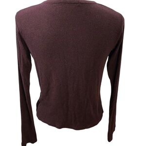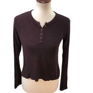 Brandy Melville Knit Thermal Henley Top One Size Wine Cropped Ribbed Casual
