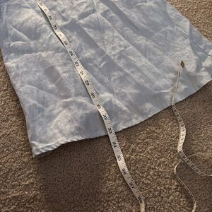 Good condition with minor wear. See photos for details and measurements. One size fits all per the brands statement. See photos for details and measurements for accurate sizing. Tie in the back. Chic light blue dress with a soft texture. Ideal for everyday wear.