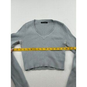 Brandy Melville Light Gray Ribbed V-Neck Cropped Knit Sweater Top #6439