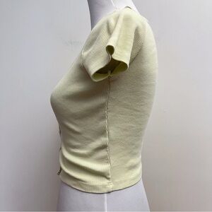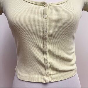 Brandy Melville Light Green Ribbed Button Up Cropped Short Sleeve Henley