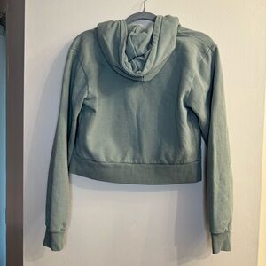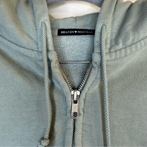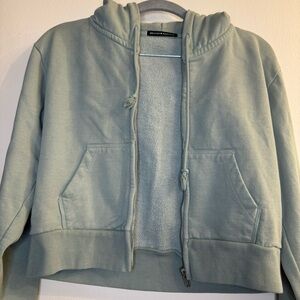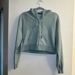 Brandy Melville Light Teal Zip Up Cropped Hoodie Sweatshirt One Size