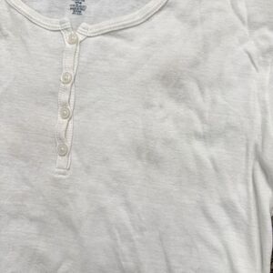 Classic white long sleeve Henley top. Perfect for casual wear. New without tags Approximate Measurements, but is a little dirty. See closeup photos.