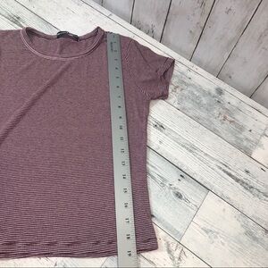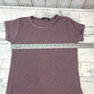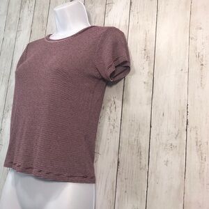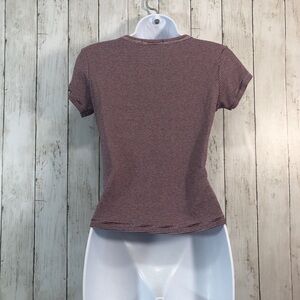 Maroon and white strips, short sleeves, round neck, tags states OS,please check measurements for better fit, colors may vary due to lighting, good used condition, Sz: OS