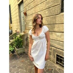 Brandy Melville Mini Dress Puff Sleeve Ruched Bust Babydoll Milkmaid One Size