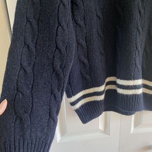Brandy Melville Navy Wool Blend V Neck Sweater Fisherman cable Knit OS NEW