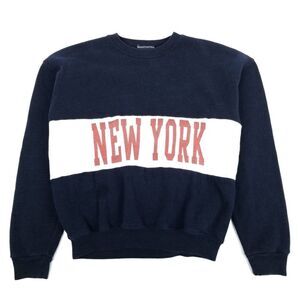 Brandy Melville New York Navy Ribbed Crewneck Sweatshirt Fleece Pullover Sweater