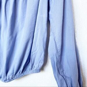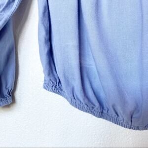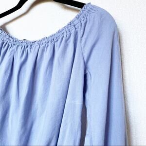Brandy Melville off the shoulder blue top, one size. Staining on the front and a bit on the back as well. See photos.