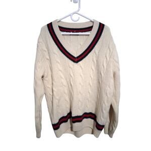 Brandy Melville Preppy Women's size XL Wool Tennis Prep Varsity Chunky Sweater Academia Preppy Coastal Nautical Classic Heritage Cable Knit Grungecore Alternative Old Money Prep