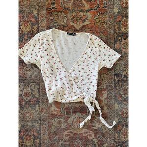 Brandy Melville Rae Floral Thermal Wrap Short Sleeve Top
