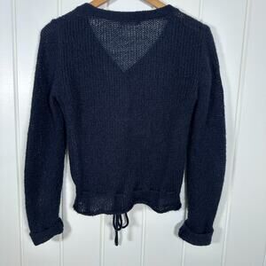 Brandy Melville Sweater Women's OS Navy Blue Mohair, Wool & Acrylic Tie Waist