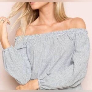 TAGS: brandy melville, striped, stripes, blouse, flowy, off the shoulder, cotton, lightweight, beach, travel, dinner, ruffle, cropped