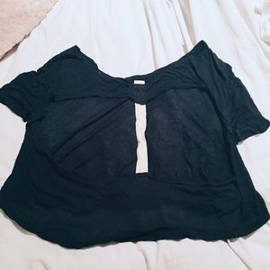 Black, Brandy Melville, sheer, crop top with white "strap" in between two back cutouts! Worn once on vacation! Super cute, comfortable, and light!!