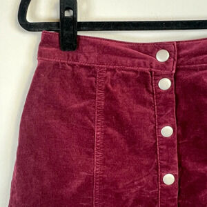 Brandy Melville Velour Snap Front Mini Skirt Burgundy Stretch Women's Sz Medium