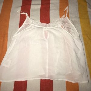 Bought this and never wore it, no tags, white brandy melvile shirt with flowery design at the top, fits as a crop top. I'm 5'7 and it goes to my belly button, adjustable straps!! In good condition, only tried it on. Make offers!!