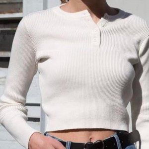 Brandy Melville Classic White Henley Ribbed Sweater Top that's cropped