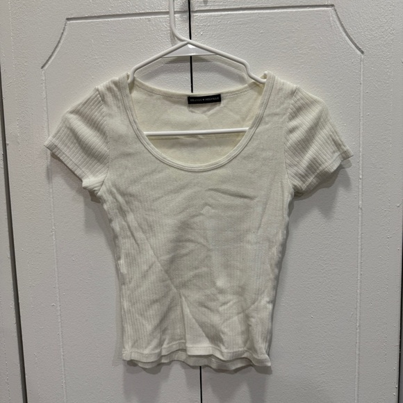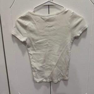 Brandy Melville White Ribbed Short Sleeve Shirt
